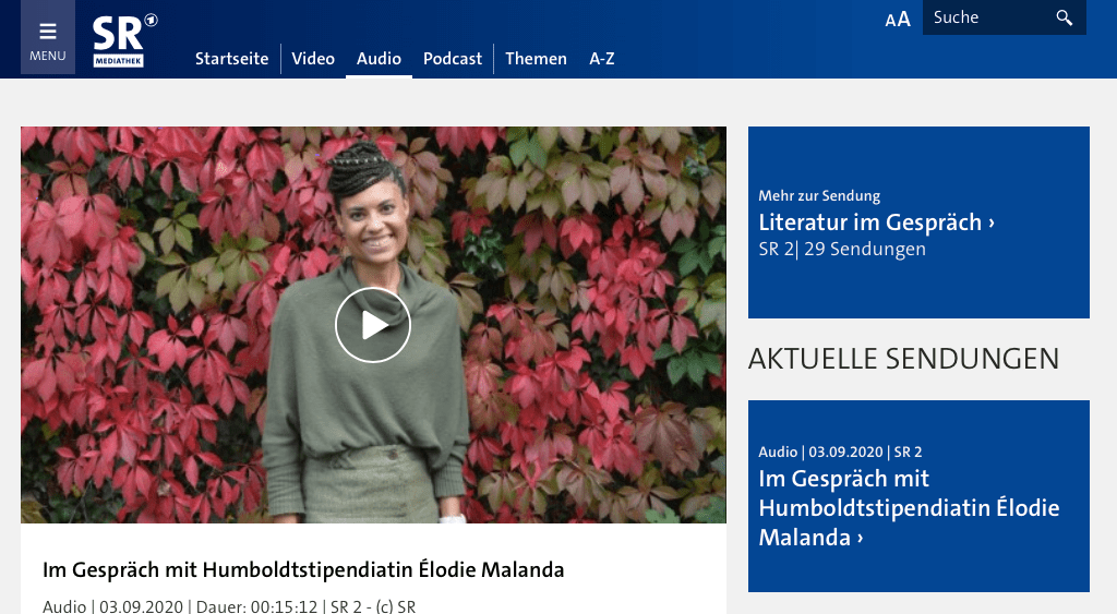 Juhuuu, ich war im Radio! Um genau zu sein im SR 2 Kultur in der Sendung „Literatur im Gespräch“ von der großartigen Tilla Fuchs! (ich liebe ihre Frage und ihre Stimme!) Wer sich die Langfassung anhören will, kann das in der Mediathek des Saarländischen Rundfunks oder hier machen. Dauert 15 Minuten, gibt einen Überblick über meine Arbeit und einen Einblick in meinen luxemburgischen Akzent (den ich durch vollschnellreden zu kaschieren versuche).