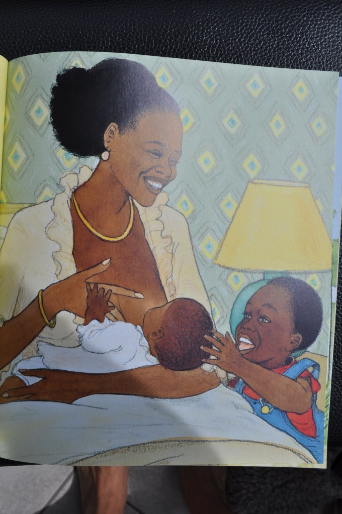 Ich weiß, im Moment halte ich mich absolut nicht an die selbsterstellte Regel v.a. Bücher auf Deutsch zu besprechen. Aber, ich habe pünktlich zum Muttertag ein Buch gesucht, in dem es (u.a.) um eine Schwarze Mutter geht und (auf der Schnelle) auf Deutsch keins gefunden. Dafür steht in meiner Bibliothek dieses Buch von der Afroamerikanerin Mildred Pitt Walters, das ich absolut liebe. Original unter dem Titel „My Mama needs me“, mit Bildern der Afroamerikanerin Pat Cummings, erschienen, ist die französische Version von dem weißen Künstlerehepaar Claude und Denise Millet illustriert. Die Originalillustrationen kenne ich nicht (aber sie haben den Coretta Scott King Award for Illustrators gewonnen, d.h. sie müssten gut sein) aber die Illustrationen der französischen Version machen mich einfach nur glücklich! Ok, das hat höchstwahrscheinlich etwas damit zu tun, dass Claude und Denise Millet viele meine Kindheitsbücher illustriert haben, aber ich finde, sie sind –auch ohne den Einfluss von Kindheitserinnerungen sehr gelungen.